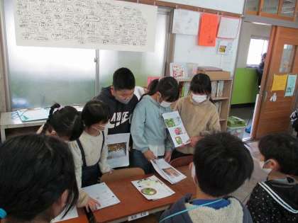 今日の授業参観では、総合的な学習の時間に調べた嵐山の魅力を発表しました。1組、2組、英語ルームに発表ブースを作り、自分たちが決めたテーマで調べたことを伝えました。来てくれた友達やおうちの方の前でも元気に発表できるようになりました。