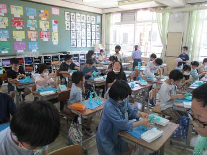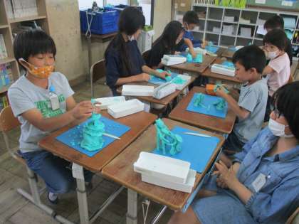 平らな板を作ったり、ひも状にしたものを組み合わせたりしながら、ねん土を立ち上がらせることにチャレンジしました。