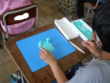 様々な形を作り試しながら、どうすれば粘土が立ち上がるのかを考え、作品を作りました。平らな粘土にして、形を作ったり、棒の形にして作ったりしながら、自分の作品を作っていきました。一番高い作品を作ろうとする人や凝ったデザインに仕上げようとする人など、様々な作品が完成しました。完成した作品は、タブレットで撮影し、保存しています。
