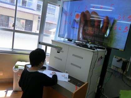 算数では、「前後」「左右」「上下」などの方向+「〜ばんめ」という言葉を使って、ものの順番や位置を表す学習をしました。(例 前から4番目)