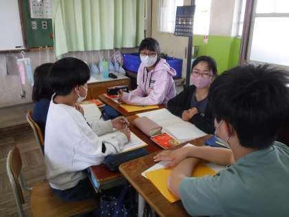 国語の学習で、友達の話の内容をとらえて、自分の考えを深める学習をしています。それぞれのクラスで話題を決めて、自分の考えをもち、友達と意見を聞き合いました。1組では、「給食かお弁当か選択制にする」という話題になり、賛成なのか。反対なのか、理由や事例を意識して話を聞きました。