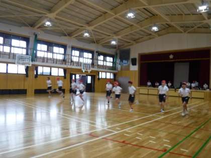 新体力テストでシャトルランを行いました。お互いに数を数えたり応援したりしながら、それぞれ一生懸命に走っていました。最後まで走っている人が走り終えたときには、自然と拍手が起こっていました。