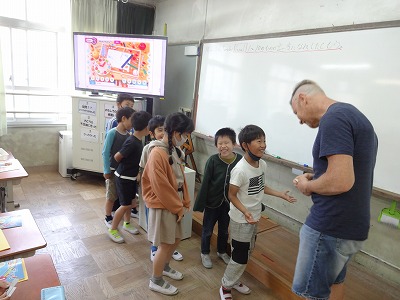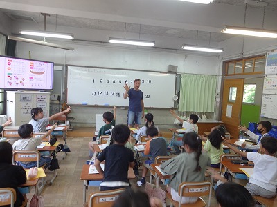 今日はALTのアンディー先生と、How many?の学習をしました。じゃんけんをして、勝ち負けあいこの数を、楽しく英語で話していました。