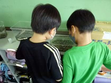 今日の理科の授業で新しく学習する生命のつながりの単元に関連して、メダカを教室で飼っています。休み時間になるとどんな様子かじっくり見る子どもたちの姿が見られました。