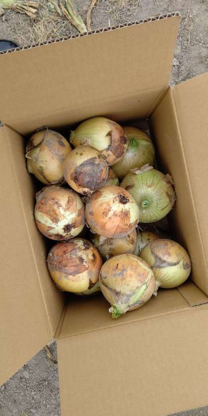 箱いっぱいに玉ねぎをつめこみました。そしてかわいいミニ玉ねぎもありました。