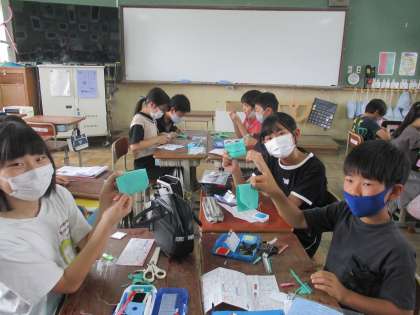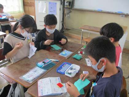家庭科の学習では、ボタン付けの練習も終わったので、今週からマイ・ミニバックを作り始めました。何を入れるか、どんな形や模様にするか、などイメージをふくらませながら、楽しそうに取り組んでいました。どんな作品が完成するか楽しみです。