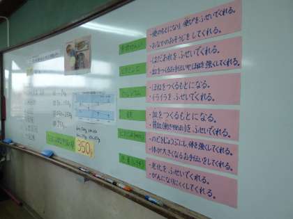 今日は栄養教諭の先生の食の学習の授業がありました。今回の授業では野菜の力について学習し、自分たちの体には野菜の力が多くいることを確認しました。給食でもたくさん野菜を食べる姿が見られました。