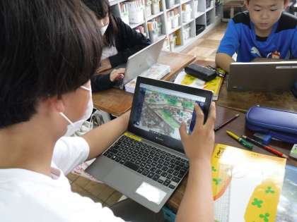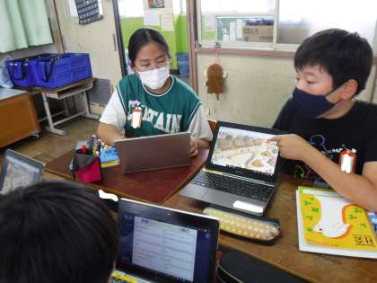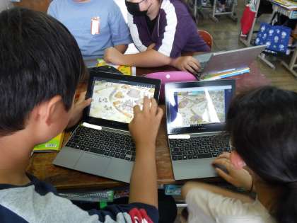 社会科の学習で、縄文のむらと弥生のむらの想像図をそれぞれ比べて、話し合いました。GIGA端末で資料を拡大して、細かなところにも目を付けて、それぞれの人々の様子等考えることができました。「どうして弥生のむらでは、見張りをしている人がいるのだろう。」「どのようしにて、様々なことが変わっていったのだろう。」と、疑問をもつこともできました。