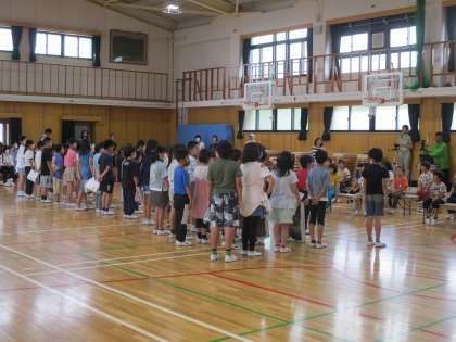 4年生からは、先生クイズと合唱をプレゼントしました。