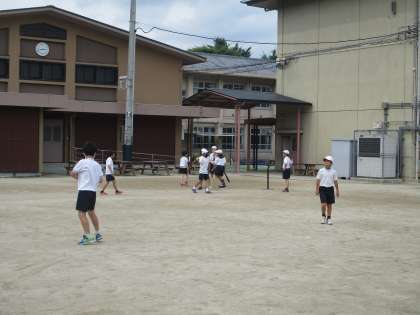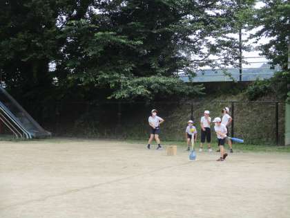 今週の体育科の学習は、「ベースボール」です。3年生のときにハンドベースボールをしたことがあったけれど、バッドでボールを打つのは初めてです。ルールも少し違いますが、すぐに理解していました。準備、後片付けもバッチリでした。