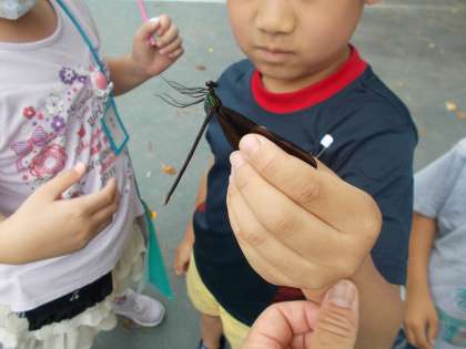 先週の授業のときに気になっていたこの白い家のような箱。やっと理科の先生に「百葉箱」というものだと説明してもらえた2年生。少し難しかったけれど、来年から始まる理科の学習に胸を膨らませる様子が見られました。運動場にはひらひらと飛ぶハグロトンボの姿が。「たんぽぽのちえ」で学習したたんぽぽが、綿毛を飛ばしている様子も発見。おもしろいものがあちらこちらにたくさんあって、どれを友だちに伝えようかと悩んでしまうほど、たくさんの『こんなもの』が見つかりました。発表が楽しみです。