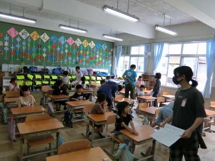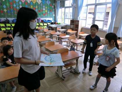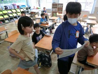 先週の金曜日に、第一回スマイル活動がありました。スマイル活動は、1年生から6年生まで各学年1名から2名程度が1つのグループとなって、月に1回休み時間に一緒に遊んだり、行事に向けて活動をしたりします。同じグループの6年生が迎えに来てくれると、みんなうれしそうな顔で、グループのメンバーが待つ教室へと移動していきました。