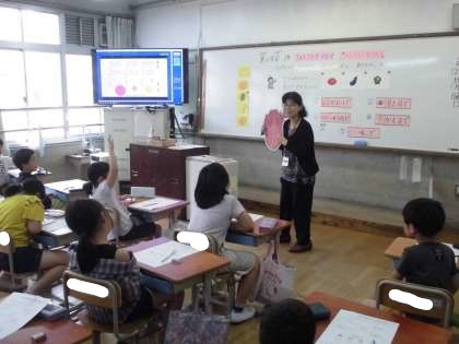 今日は栄養管理員の先生に来てもらい,旬の野菜のことや,味わいのことについて学習しました。