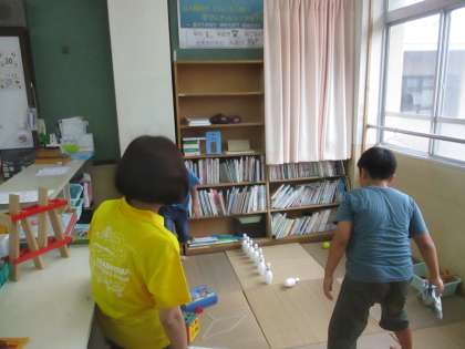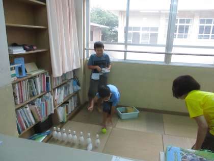 何本倒したか、誰より何本多く倒せたかな?と遊びながら、数の学習もできました。