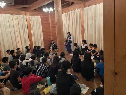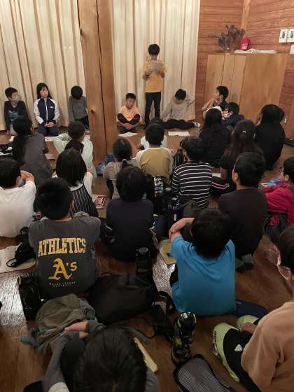 今日のふりかえりの写真が間に合いました。今日の良かったことと、反省すべきことをリーダーさんが話していました。うまくいかなかぅたことも、次に向かうための大切なことですね。頑張りましょう。