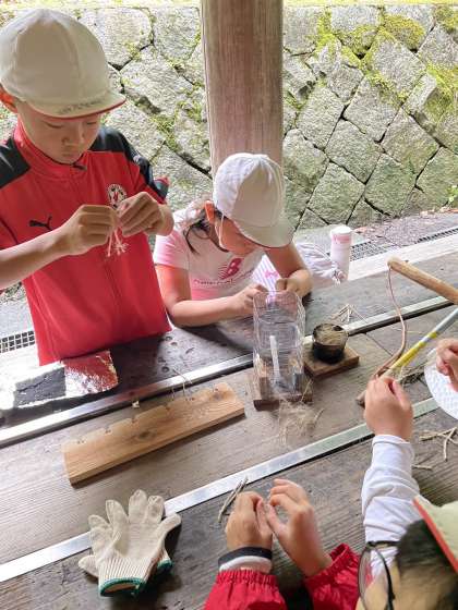火の赤ちゃんを育てるための準備です。麻紐をほどいています