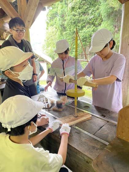 とても上手に火おこし器を操作するお友達に、すごーい!と歓声が上がります。あと、少し、かな?