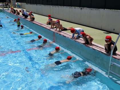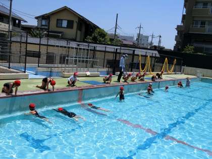 今回は、浮く活動にたくさん時間をとりました。壁タッチのふし浮きも、足を伸ばして浮く人が増えてきました。みんな時間内に何度も挑戦していました。