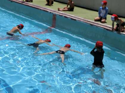 手と足を広げての大の字浮きでは、「広げるのこわい!」と言っていた人も、補助してもらいながら、徐々に広げて浮いていました。しっかり挑戦する姿に感心しました。無理はせず、水の楽しさを感じてもらえるように進めていきたいと思います。