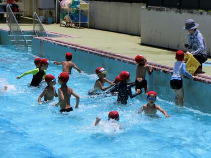 最後の活動は本日1番の歓声と盛り上がりがあった「たからさがし」です。おはじきやゴムボールを何度も潜って底から拾い上げていました。「やっぱりこれが1番楽しい!」と笑顔でプールを終えました。明日もご準備など、お世話になります。よろしくお願いいたします。