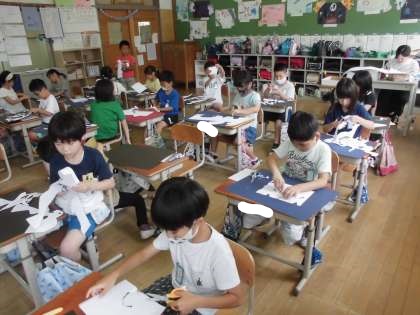 図画工作科の学習で「はさみのあーと」という作品作りに取り組んでいます。