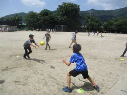 中間休みになると、6年生の多くの子ども達が外に出てスポーツチャレンジに取り組んでいます。特に、ラグビーボールの部では、1分間に何回パスを続けられるかを競っています。みんなでよい記録を目指して頑張っています。