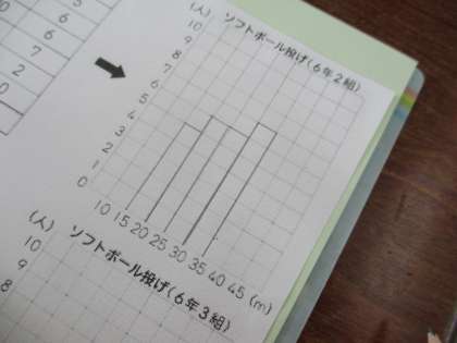 6年 「表の値をもとに、ヒストグラムをつくりました。」