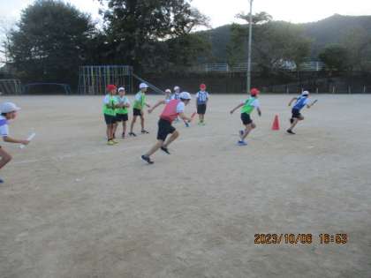 今日の陸上部は6年生が中心になってみんなで鬼ごっこをして体を動かしたり、準備運動をしたりしていました。体が温まってきたので、みんなでリレーをして楽しみました。バトンを渡すのも難しいけど、声をかけて頑張りました。