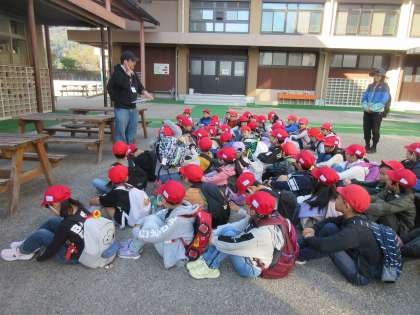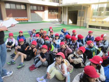 今日は楽しみにしていた遠足でした。お天気にも恵まれ、最高の遠足日和!持ち物や道の歩き方などを確認して、いざ嵐山東公園へ。「どんな秋が見つかるかな?」「どんぐりはたくさんあるかな?」とワクワクしながら向かいました。