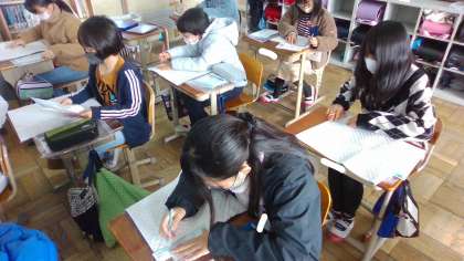 家庭科で「思い出を形にして、生活を豊かに」を学習しています。子ども達は、自分の好み生地を選び、トートバックやナップザックを作成します。まず、ミシンで縫う場所に線を引きました。その後は、5年生での学習を思い出しながら、ミシンの準備をし、ぬい始めていました。5年生の時よりも、手際よく進めることができています。
