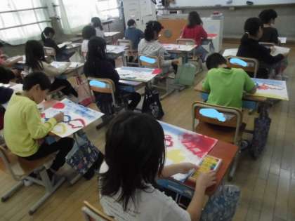 図画工作画でステンシル版画に取り組んでいます。