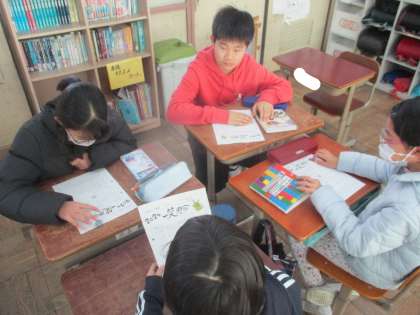 キャリアパスポートを使用し、新年の目標をたてました。小学校生活も残り少なくなり、卒業に向けて自分が頑張りたいことを書きました。その後、近くの友達と交流しました。自分の立てた目標に向けて、コツコツ取り組んでほしいと思います。