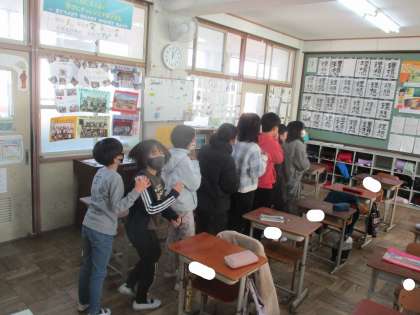 3学期が始まり、始業式では6年として立派な姿を見せてくれました。その後の学活では、すごろくを使って、冬休みの出来事や、3学期に頑張りたいことなどを話しました。すごろくの中には、体を動かすマスもあり、スクワットやジャンプなどをして体を動かしました。伝言ゲームもとても盛り上がりました。3学期もみんなで仲良く協力して過ごしてほしいと思います。