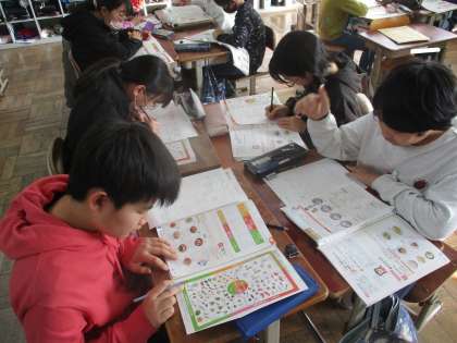 家庭科で、「まかせてね今日の食事」の学習をしています。子ども達は、栄養バランスの良い献立を自分達で考える学習をしました。一汁二菜を目標に、食材の栄養表を見ながら友達とどのような献立にすると良いのか話し合いました。1食分の献立を考えるのに、20分程度かかりました。子ども達は、毎日、自分達の健康に気を配り、献立を考えてくださっているお家の方の大変さに気付いた様子でした。