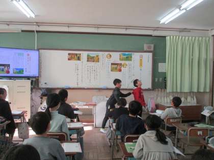 今日は道徳の学習で、「にぎりしめた いね」を学習しました。