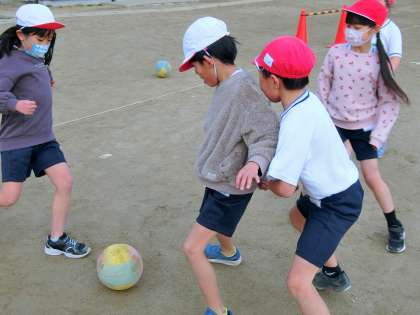 3年生は今、体育でサッカーの学習をしています。今日は、初めてのサッカーだったので、ゲームに慣れるためにたくさんボールに触れました。少しずつルールに慣れたり、作戦を考えたりして、チームで協力して頑張ってほしいと思います。