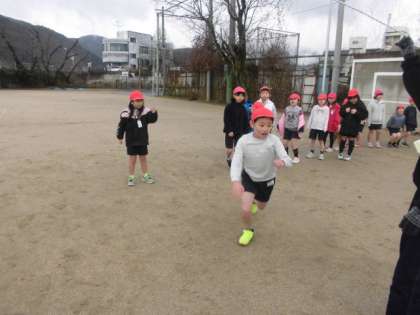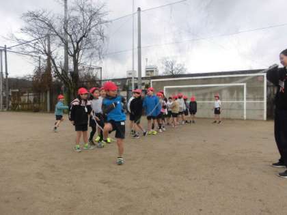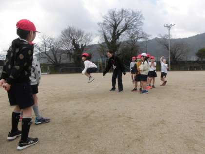 友だちに優しく背中を押してもらって,縄に入れる子もいました。