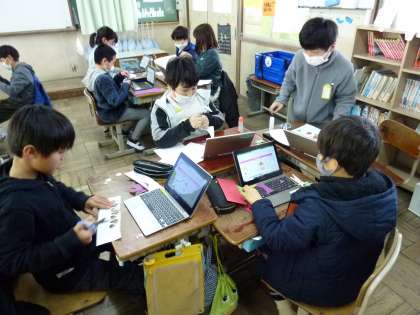 今日の総合的な学習の時間に働くことについて学習するため、ケーキを作って売る仕事を通して働くことがどんなものなのかを考える学習をしました。グループで協力しながら働くことをしてみて、働くことや仕事についてこれから自分の調べたいことを見つけて、学習していってほしいと思います。