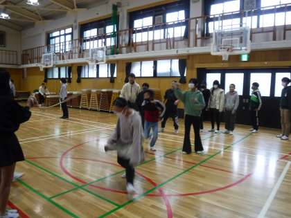 2月22日(金)に、健やか委員会企画の大なわ大会がありました。大なわ大会にむけて、休み時間にクラスで声を掛け合って、練習をする姿ががたくさん見られました。