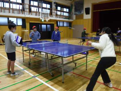 卓球部の子ども達と教職員で、卓球をしました。6年生の子ども達は、「先生、よろしくおねがいします!」と、いろいろな先生に自分から声をかけ、勝負を挑んでいました。さすが6年生!担任向けて、猛烈なスマッシュを炸裂していました。みんなとても強かったです。
