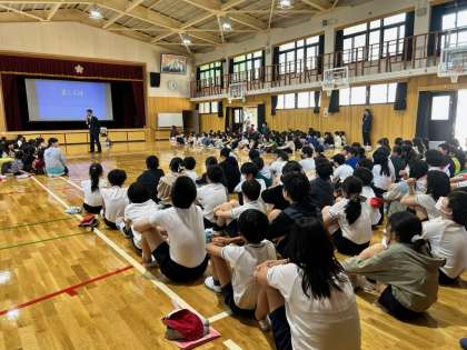 全校集会で、校長先生から憲法についてのお話を聞きました。社会科の学習でも勉強していたので、より理解することができました。