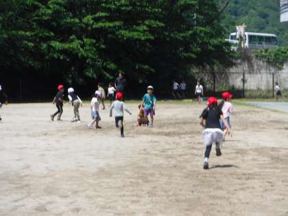 とてもいいお天気だったので、途中、走りつかれた子ども達は、校長先生の周りに集まって休憩していました。