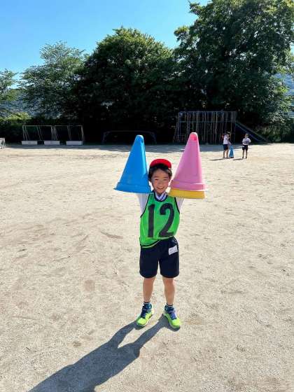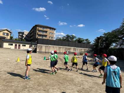 みんな元気いっぱい、顔を真っ赤にしてバトンパスの練習を頑張っています。