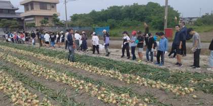 たまねぎ畑にやってきました。たまねぎの香りがします。