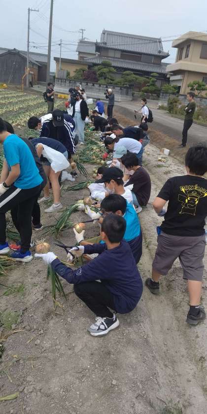 たまねぎを引っこ抜いてハサミでチョキチョキ