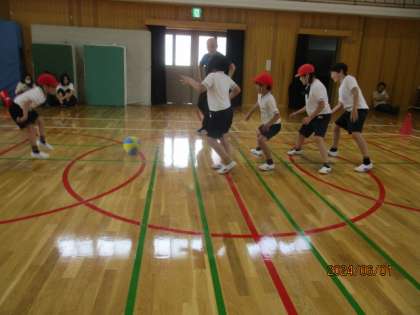 体育の学習では、小さなボールと大きなボールで転がしドッチボールをしました。