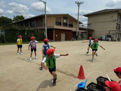 今日は4年生全員でリレーをしました。