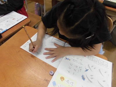特に、「シ」と「ツ」を書くことに苦戦している様子でしたが、字を書くことが好きな2年生の子どもたちは、カタカナを上手に書こうと前向きに頑張っていました。