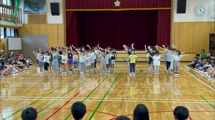 1年生からは、お礼の出し物でダンスをしました。セリフもみんな大きな声で言うことができていて、練習の成果をしっかりと出し切ることができました!楽しそうに踊る姿がとても素敵でした。退場は、1人で堂々と歩くことができました。