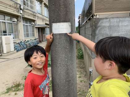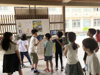 今日は、学校の敷地内をあちこちチェックして、学校の良いところを探します。